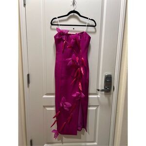 Elliatt Bethany Strapless Floral Midi Dress Purple Wedding Eventwear size S NWT