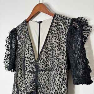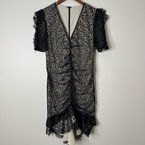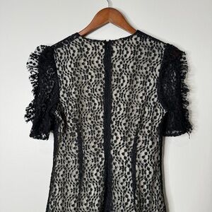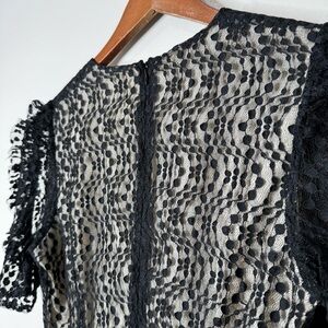 Elliatt Black Venice Lace Puff Sleeve Fitted Ruched Mini Dress