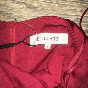 The dress comes in size small, with a hi-low dress length that complements the blouson style. The solid pattern of the dress is vibrant and colorful, making it ideal for a summer event. This dress is from the E L L I A T T brand, and it features an assortment of aspects that set it apart from other cocktail dresses. Get ready to turn heads and make a statement with this unique dress.