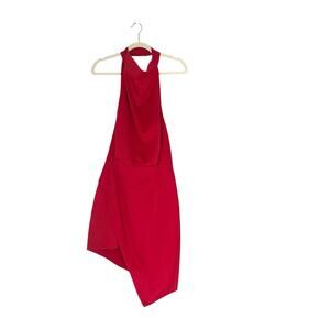 Elliatt Camo Halter Satin Dress Asymmetric Red Size Large cocktail party attire