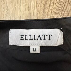 This stunning black sheath dress by Elliatt features an asymmetrical design with elegant ruching that enhances its sophisticated silhouette.