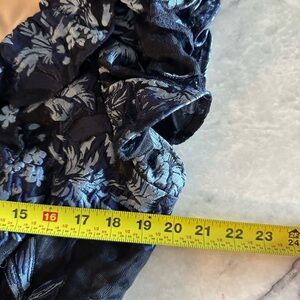 This stunning Elliatt cocktail party mini dress from Bloomingdale's is the perfect blend of elegance and fun. Featuring a gorgeous blue and black floral embroidery throughout, this dress is designed to turn heads at any event. The flattering belted waist comes with a chic gold belt buckle, adding a touch of sophistication, while the playful ruffled skirt brings a flirty vibe to the look.