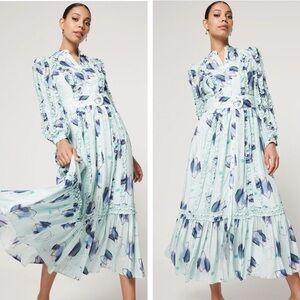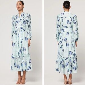 Elliatt Collective Sample Aqua Warmth Maxi Dress in Abstract Blue Floral size S