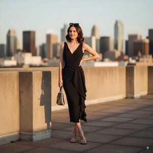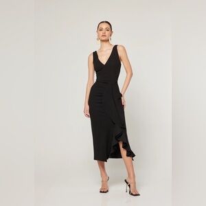 Elliatt Elizabethan Ruffle Midi Dress in Black Size Small NWT