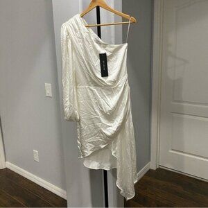 Elliatt Emery One-Shoulder Mini Dress Draped White Bridal Evening Cocktail Large