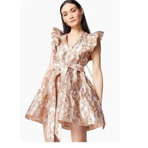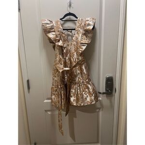 Elliatt Glimmer Metallic Jacquard Mini Dress wedding Guest Dress Size S NWT$228