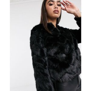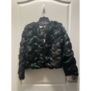 Elliatt Goldenseal textured faux fur jacket in black size L NWT$299