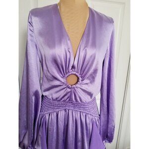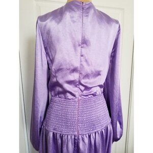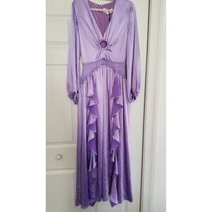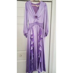Elliatt Influence Lavender Satin Maxi Dress Long Sleeves Front Slits Sz S