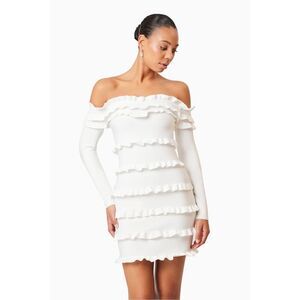 Elliatt Kimberly Long Sleeve Frill Mini Dress White Party Cocktail size S NWT$389