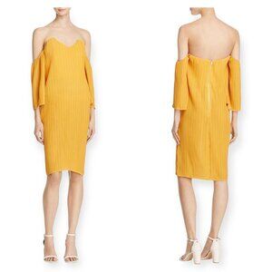 Elliatt Marigold Pleated Off Shoulder Dress XS Yellow NWT