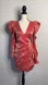 This stunning metallic dress is a statement-making piece that effortlessly combines drama and elegance. Crafted from a shimmering fabric in a radiant copper-gold hue, it catches the light beautifully, creating a mesmerizing glow with every movement. The dress features a deep V-neckline that enhances the décolletage, adding a touch of sophistication and allure. The long sleeves are accentuated with voluminous, structured puff shoulders, giving the dress a bold and fashion-forward silhouette. The wrap-style bodice cinches at the waist, creating a flattering fit that enhances the curves. A gathered, ruched detail at the side seamlessly transitions into an asymmetrical draped skirt, which adds movement and fluidity to the look. The subtle high-low hemline with a ruffled edge lends a playful yet refined touch.