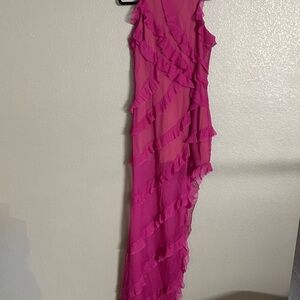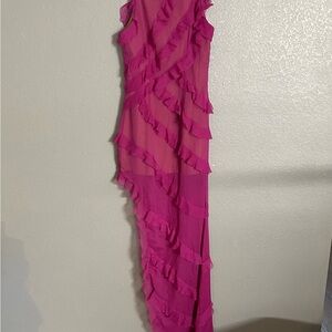 Elliatt Pink Asymmetrical Ruffled Gown size Large NWT