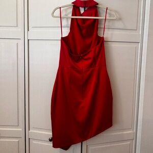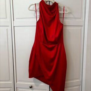 Chic asymmetrical dress by Elliatt. Bold red color. Sleeveless with a stylish drape neckline. In good condition. I am selling as it does not flatter me well.