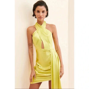 Elliatt Revolve Croatia Mini Dress Cocktail Party Crossover Halter in Citron