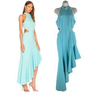 Elliatt Spectar Waist Cutout Gown Dress Asymmetrical Hem Blue Size L