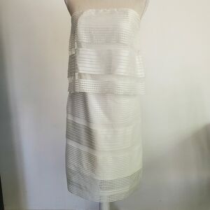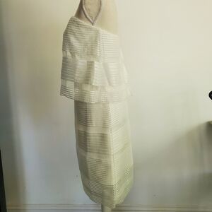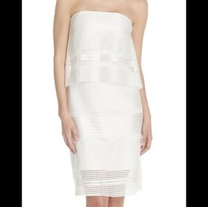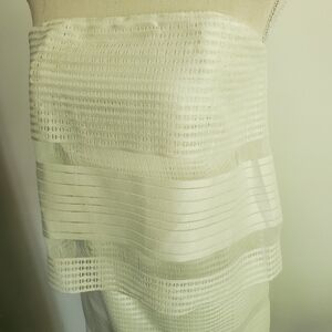 Elliatt white lace "Crested" popover dress with back zipper. Includes straps so it can be worn strapless or with the straps! Boning at the bust. This dress is just stunning in person. Brand new with tags, but there is a black mark on the INSIDE of the dress - not visible on the outside.