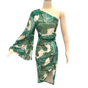 Elliatt Tory One-Shoulder Shift Asymmetrical Hi Low Palm Floral Print Midi Dress Size Small NEW