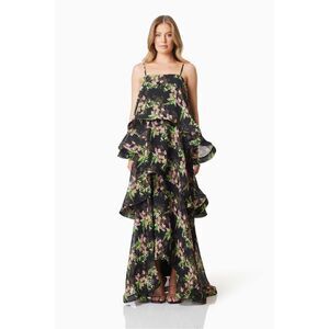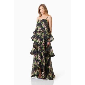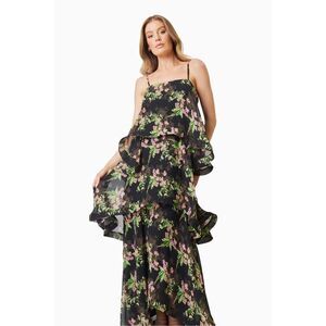 Elliatt Ula Tiered Maxi Dress Black Vacation Brunch wedding Guest Sz XS NWT