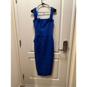 Elliatt Valeria Floral Appliqué Sheath Midi Dress in Blue Cocktail size XS NWT