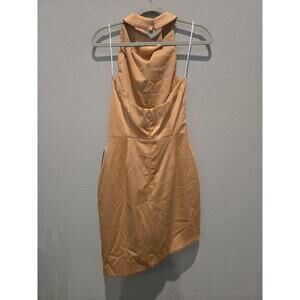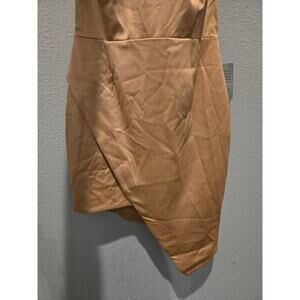 Keywords: Elliatt, cocktail dress, asymmetric, satin, brown, halter neckline, knee-length, party dress, women's fashion, elegant, zip closure, new with tags, special occasion, wedding, sophisticated.
