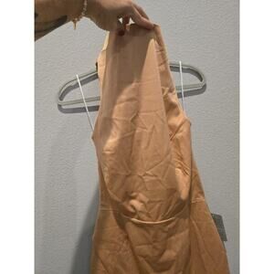 Elevate your party wardrobe with this stunning Elliatt cocktail dress. Crafted from luxurious satin in a rich brown hue, this knee-length dress features an eye-catching asymmetric design that exudes sophistication. The halter neckline adds a touch of elegance, while the zip closure ensures a perfect fit. Ideal for cocktail parties, weddings, or any special occasion where you want to make a memorable impression. This dress is new with tags, ensuring you step out in style with confidence.