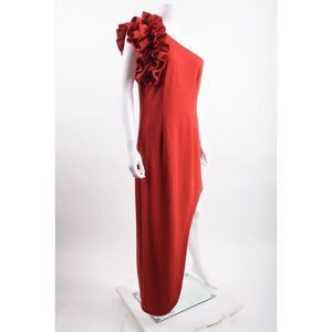 Elliatt Womens Womanism Red Midi Dress Gown One Shoulder Sz L Large NWT new withtags line through inner tag to prevent in store returns From the Liberty Collection. Vibrant one-shoulder midi dress follows asymmetric lines to hem, enhanced by a statement frill at the shoulder. Asymmetric neck Sleeveless Size-zip closure Asymmetric hem 98% polyester/2% spandex Lining: 96% polyester/4% spandex Hand wash Measurements: Neck Down - 60" Pit to Pit - 18" Sleeve - 4"