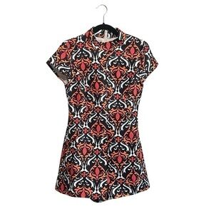 This fabulous printed playsuit features a high neck, pockets and jacquard texture. it will make for an easy transition into fall with the orange, black and white color palette. Pair it with wedges or flats for unique daytime look then slip on your favorite heels and go from day to night. Blogger favourite - as seen on Amy of style blog A Fashion Nerd