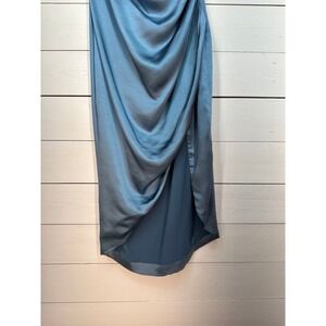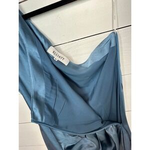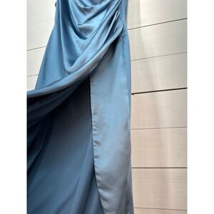 Elliatt XL One Shoulder High Slit Satin Cassini Dress in Baby Blue