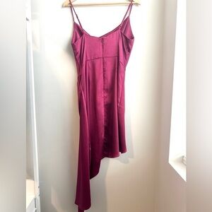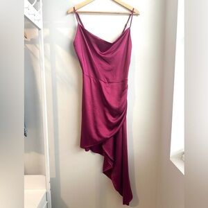 Satin fabric with draped skirt overlay and asymmetrical hem