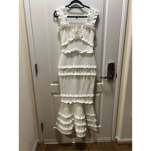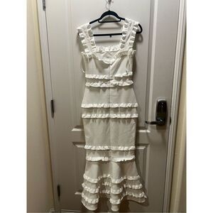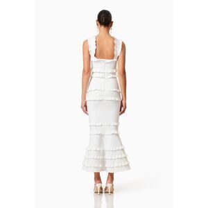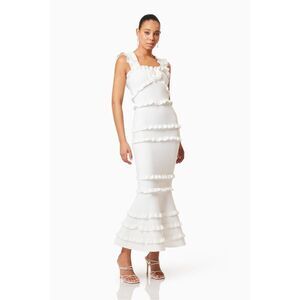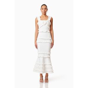 Elliatt Kimberly Frill Evening Maxi Dress White Party Date Bodycon Dress L NWT