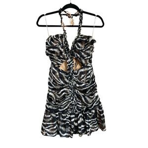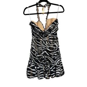 Elliatt Mini Dress Womens Small Black & White Animal Print Establish Halter Ruched Bodycon NWT