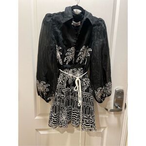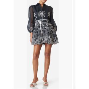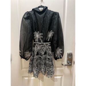Elliatt Nyx Embroidered Scene Long Sleeve Organza Cocktail Minidress size S NWT