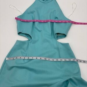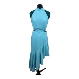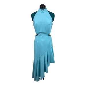 Elliatt Specter Asymmetric Sleeveless High Neck Dress in Aquamarine Blue