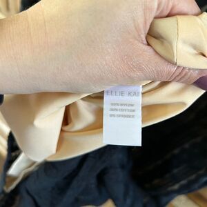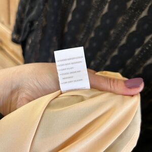 Features: Very pretty pullover dress. Completely lined. Black lace over cream. V-neck. Buttons at the back of the neck. Half length sleeves.