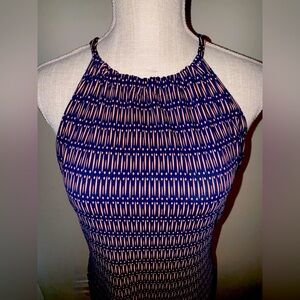 Ellie Kai Blue/coral Geometric Print Halter Tie Sleeveless dress size 4 EUC