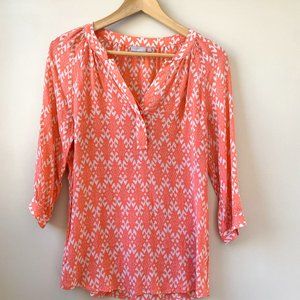 Ellie Kai Coral Pattern 3/4 Sleeve Button Down Blouse | Like New!