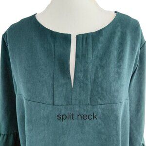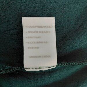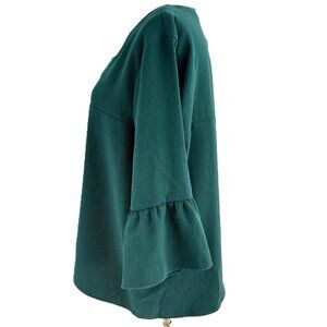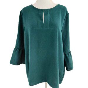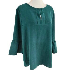 Ellie Kai Popover Blouse Size XL Hunter Green Ruffled Bell Sleeve Textured Crepe