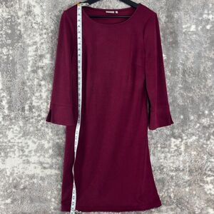 Ellie Kai Sz 4 (Small) Burgundy Knit Midi Shift Dress Red 3/4 Sleeve Knee Length
