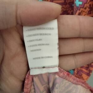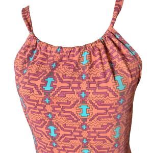 Ellie Kai women's size 2 peachish orange geometric print stretchy sheath dress. Halter tie closure. 90% nylon, 10% spandex. Stretchy performance like fabric. Very good condition, minimal wear if any. Armpit to armpit: 17in, Shoulder to hem: 25in.