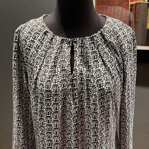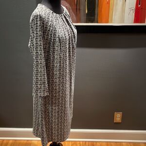 Ellie Kai black/white pattern gathered crew keyhole front neckline midi. Size 10