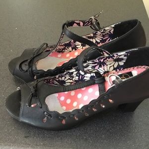 Ellie Shoes for Bettie Page Black 9 New Peep Toe