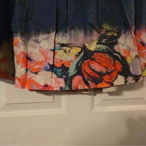 Ellie TAHARI Blue Pleated Skirt Size 8 Floral Colorful A Line Silk?