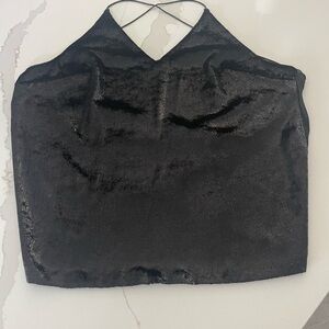 Ellie Tahari Black sequined Halter Top open drop back size small