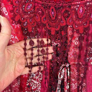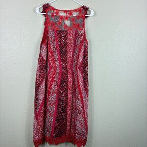 Ellie Tahari McKenna Sleeveless Floral Chiffon Silk Red Lace Metallic Stripe Sz 12