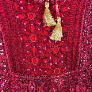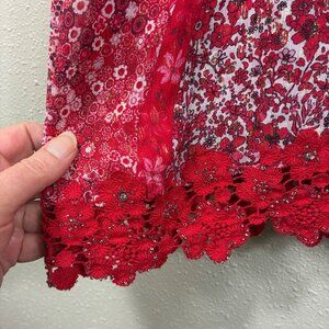 Ellie Tahari McKenna Sleeveless Floral Chiffon Silk Red Lace Metallic Stripe Sz