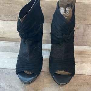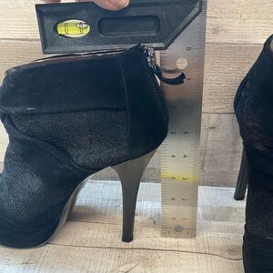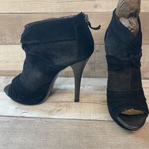 Ellie Tahari K6118000 rose peep toe black stiletto bootie with dust bag and extra heel caps.