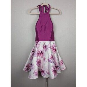 Ellie Wilde Dress Womens 12 Purple Floral Halter Prom