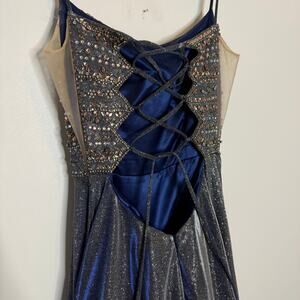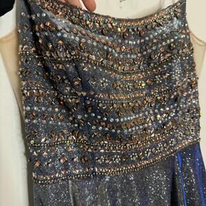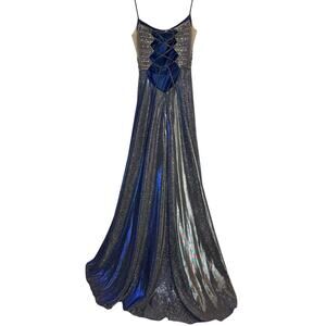 Ellie Wilde Mon Cheri Blue Liquid Formal Gown Size 6