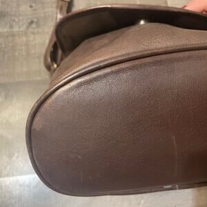 Good preowned condition- some signs of general use. The bag has a beautiful natural distressing giving this bag its vintage charm and character. Some slight blemishes throughout on outside and lining. Hardware has some wear and discoloration. Straps have some creasing wear it has been adjusted.