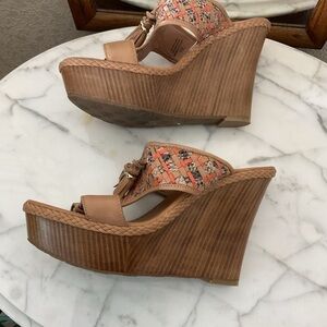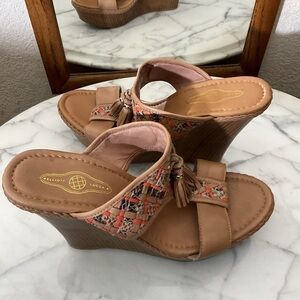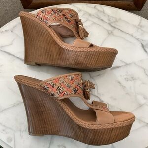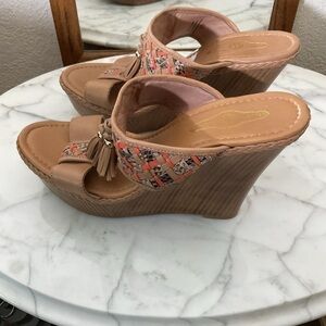 Eliot Luca - excellent condition,designer,fun shoes in a tan buttery leather with coral color mixed in with fringe Pom poms. A very high-quality pair of shoes perfect for spring & summer. These shoes look amazing with jeans, shorts, kakis or just about anything. ❤️Great for a festival, party,wedding, concert shoes, date night ❤️